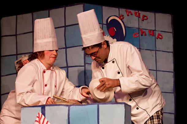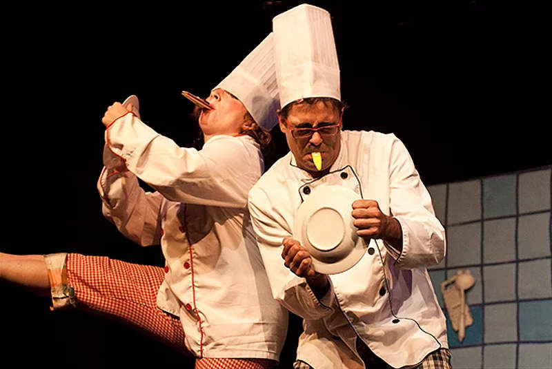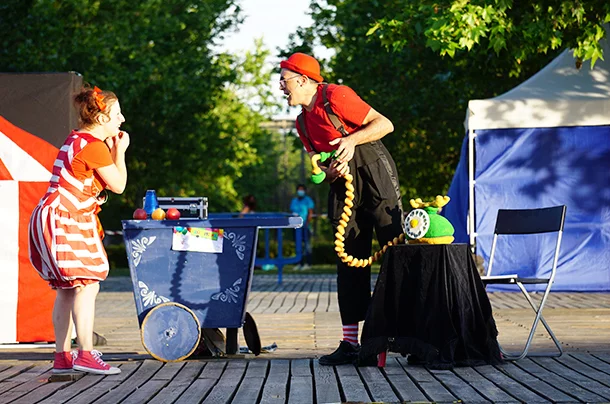 Clownficina, es un espectáculo de payasos, con un formato muy adaptable a cualquier espacio, que contiene malabares, magia, humor y acrobacias.