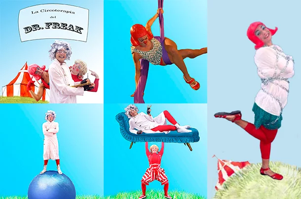 La Circoterapia del Dr Freak es un espectáculode circo para todas las edades, que fusionanúmeros de magia de grandes ilusiones,actrobacia aérea y malabares con divertidassituaciones y muy buen humor.